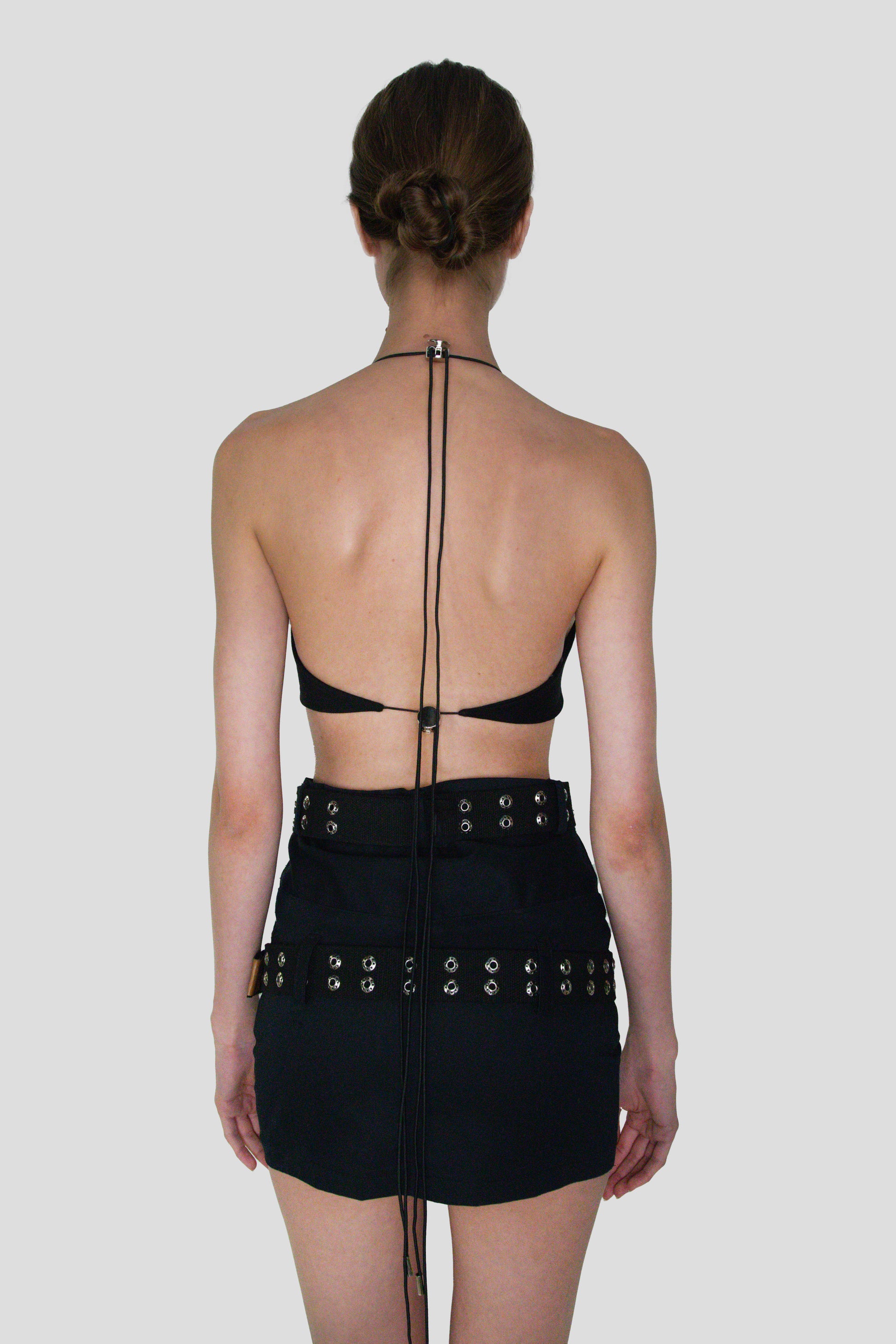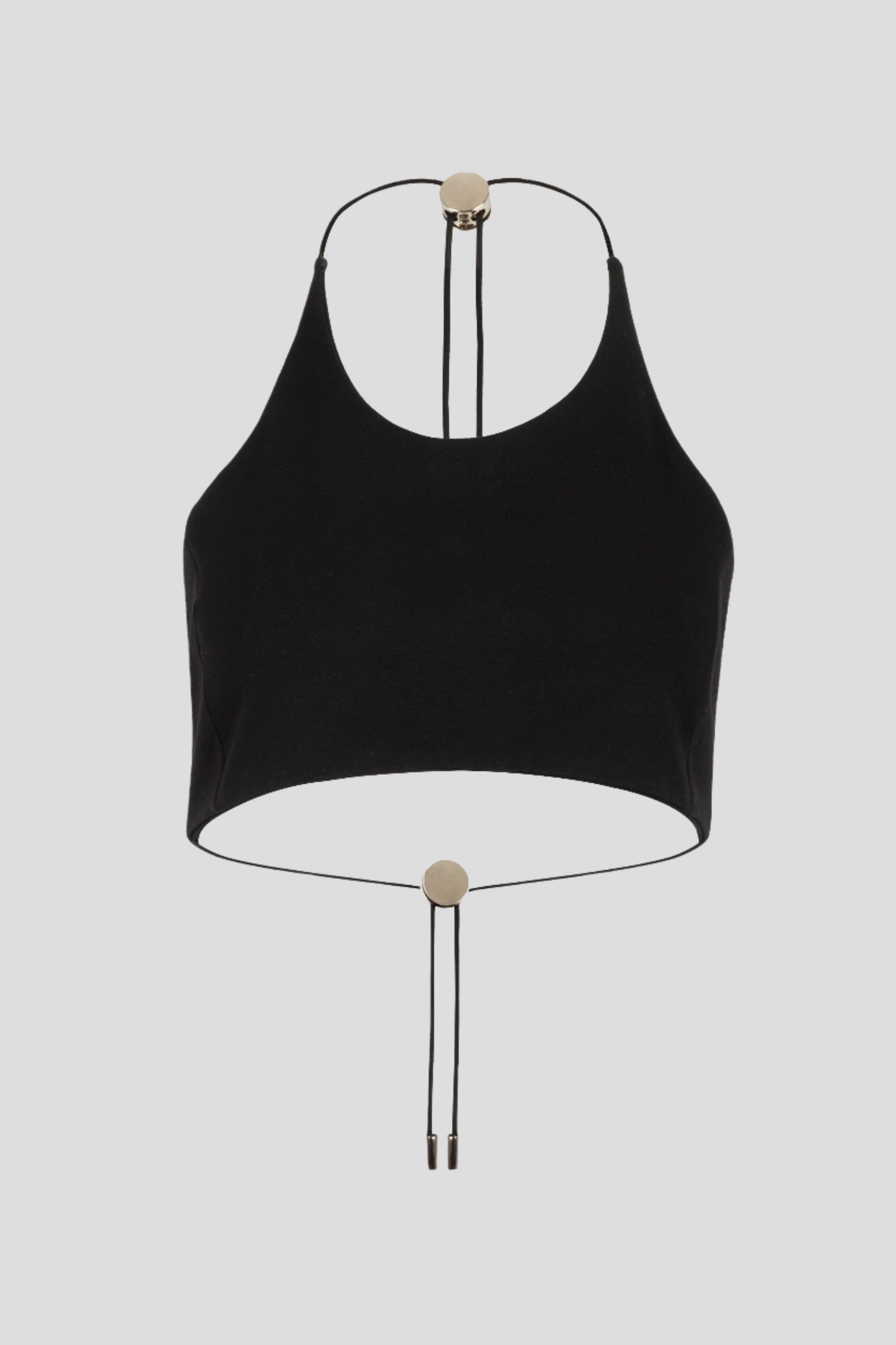TOP WITH HALTER STYLE NECK WITH BARE BACK NECKLINE. ELASTIC, WITH METAL ADJUSTERS