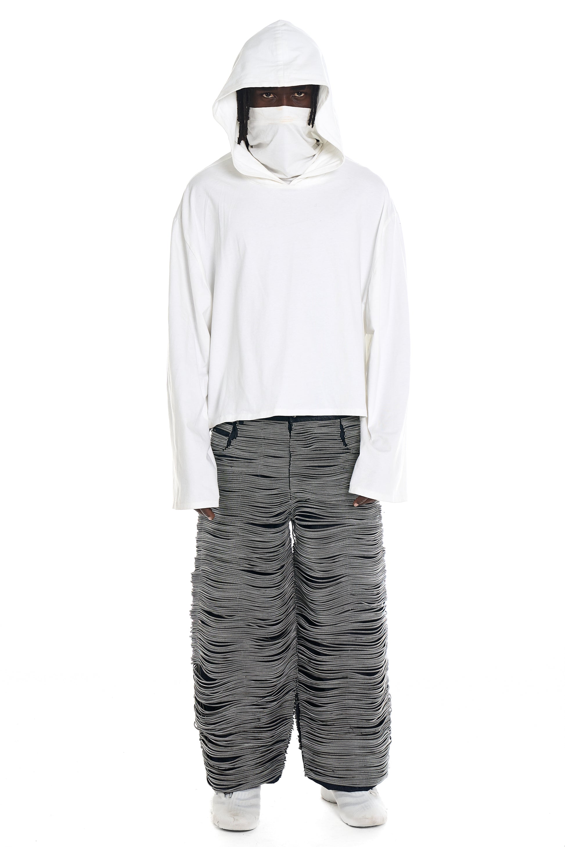 The Hooded Longsleeve is a minimalist essential designed with a futuristic edge. Featuring an integrated hood and clean construction, this piece delivers a strong silhouette that blends functionality with modern streetwear aesthetics.
