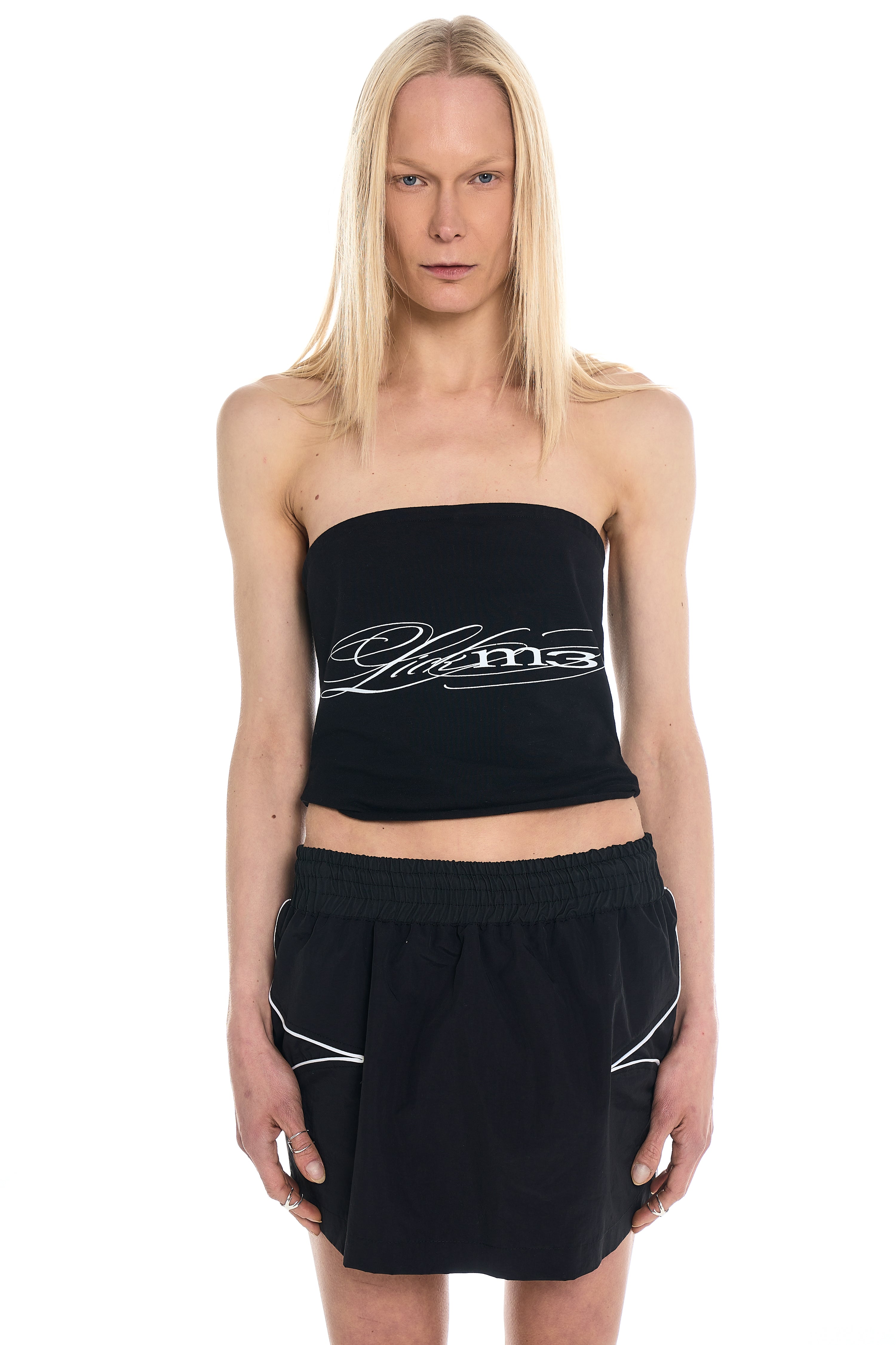 breathable feel with a bold and edgy aesthetic. Designed with a strapless silhouette, this piece features