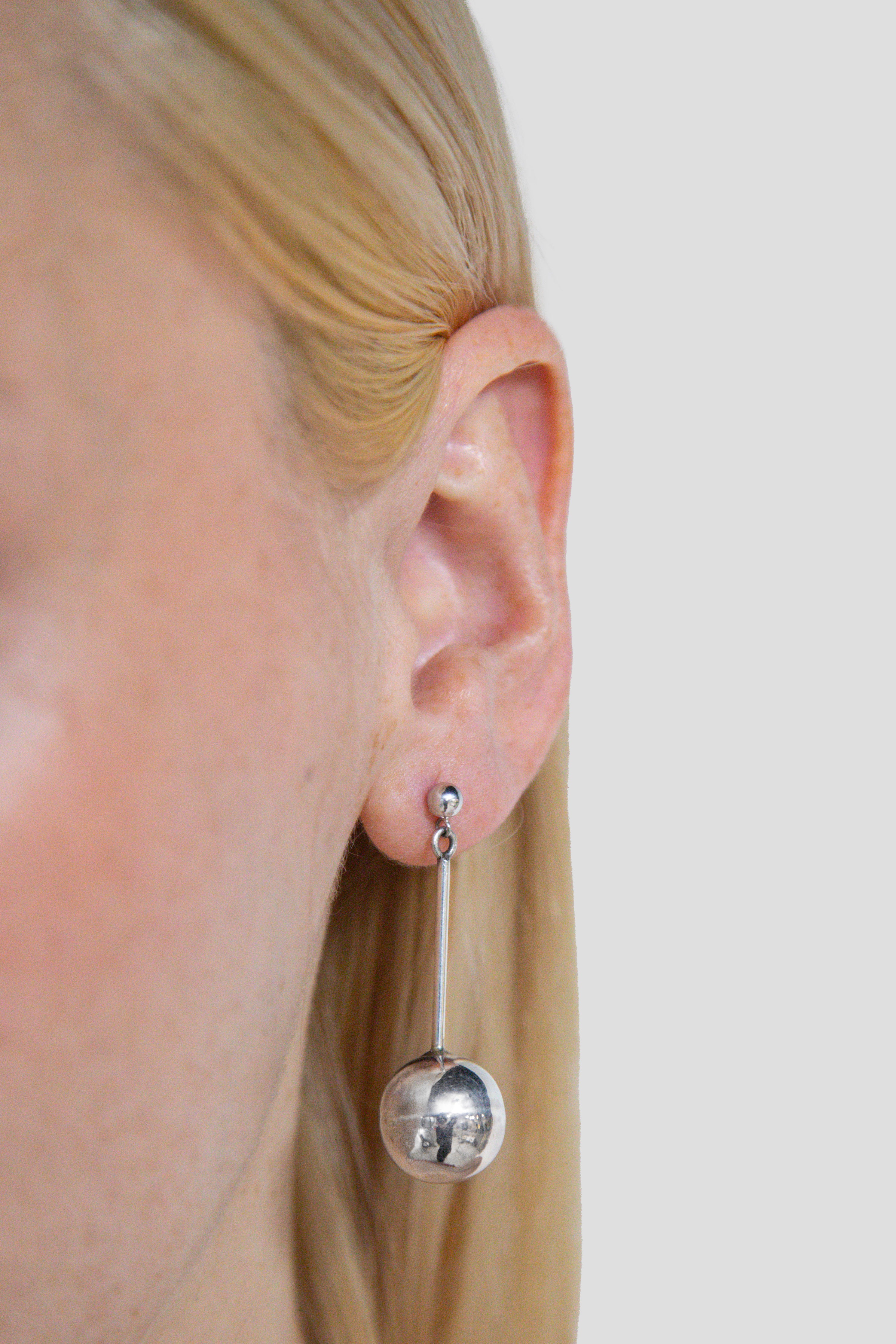 .950 STERLING SILVER HANGING EARRING WITH SILVER SPHERE AT THE END.